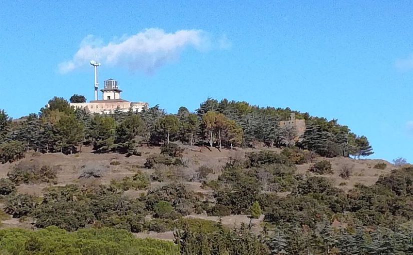 Vanaf het plateau dalen we door het bos terug af naar “la tour des Anglais”, een oude uitkijktoren die samen met Fort Brescou deel uitmaakte van het verdedigingssysteem van de stad Agde.