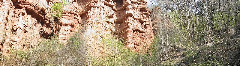Dit zijn ravijnen (voor zover je in dit landschap natuurlijk van ravijnen kan spreken) door water en wind uitgesleten in de zachtere grond van het normaal rotsachtige landschap hier rond de Gorges de l’Aveyron.