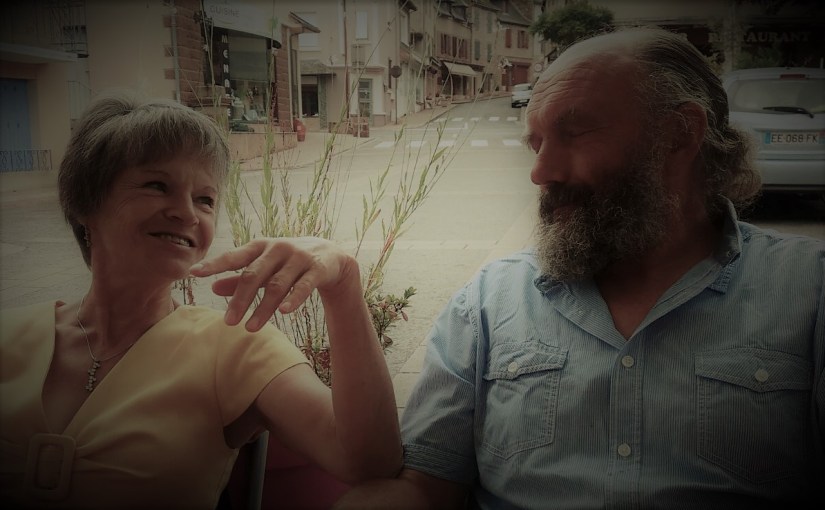 Foto : wij op een terrasje in Saint-Cyprien-sur-Dourdou